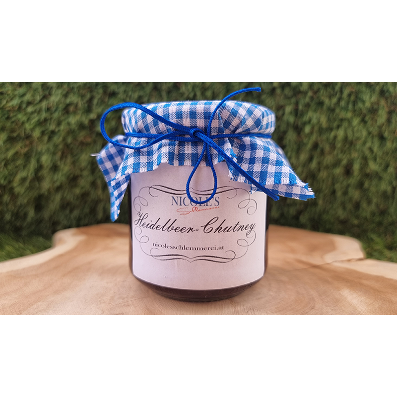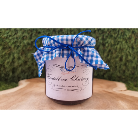 Zutaten: Heidelbeeren, Rote Zwiebeln, Rotweinessig, Rohrzucker, Knoblauch, gemahlene Senfkörner, Thymian, Pfeffer, Salz, Zitronensaft